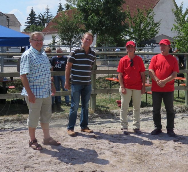 Der 1PS-Tag fand diesmal am Pfingstmontag statt, dem bisher heißesten Tag des Jahres - uffz. Gewonnen hat mit 98 Punkten bei den Jugendlichen Farina Mayrshofer mit Shetland-Pony "Heidi", bei den Erwachsenen mit 93 Punkten Alexandra Fendt mit Quarter Horse "Jonny", einen Ehrenpreis gab es für den jüngsten Teilnehmer, Alexander Wötzel, der die gesamte Strecke mit seiner Mutter mitritt.